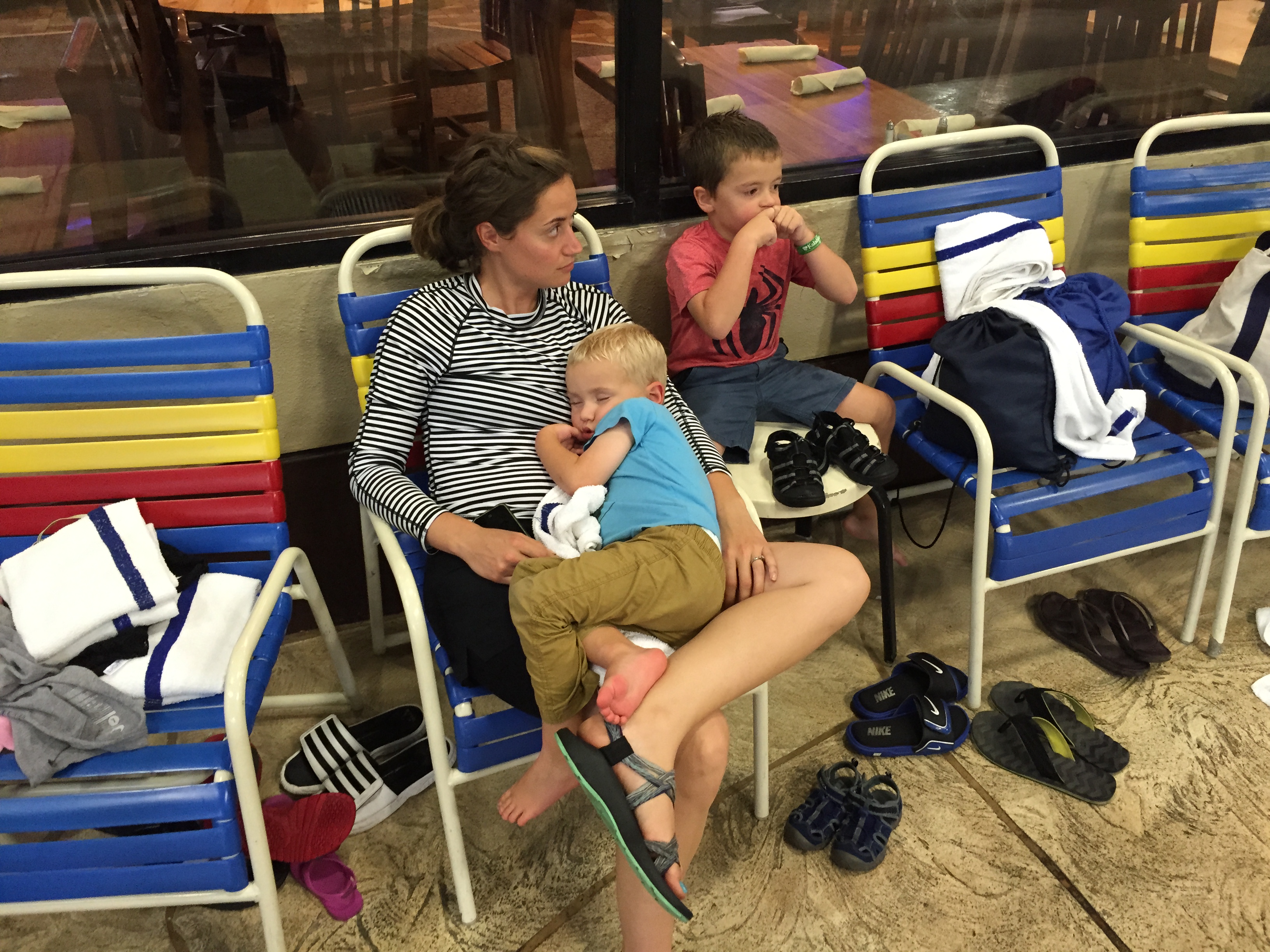 This was right before we went home, Alex and I zonked in the chair and Andrew came up and scared the pants off of me!